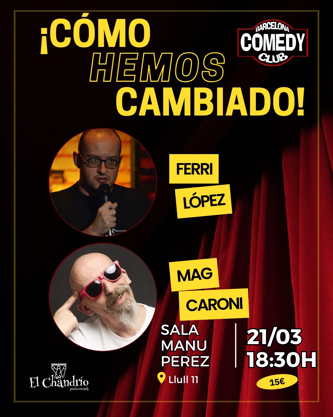 De querer ser médicos a querer ser influencers, de los rotuladores Carioca a la intencia artificial, de Julio Salinas a Álvaro Morata, de la enciclopedia Larousse a Chat GPT, de no ligar en la discoteca a no ligar en el Tinder»… Cómo hemos cambiado es un espectáculo de monólogos con Ferri López y Mag Carroni.
